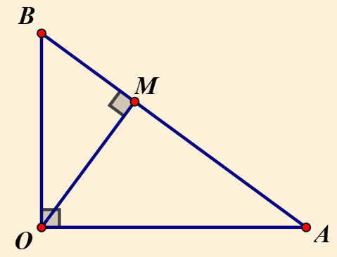 Do đó `1/2 .OM.AB = 1/2 . OB.OA => ``OM . AB = OB . OA`