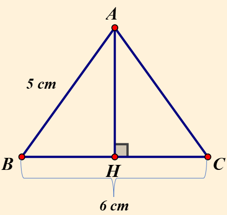 Cho tam giác `ABC` cân tại `A; BC = 30 cm`; đường cao `AH = 20 cm`.