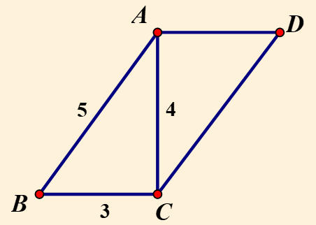 Cho hình bình hành `ABCD`. Biết `BC = 3 cm; AC = 4 cm; AB = 5 cm`.