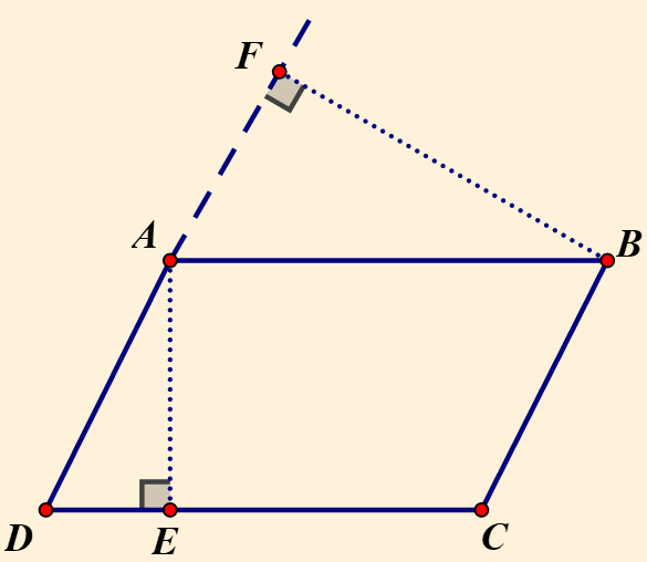 Gọi `AE; BF` lần lượt là các đường cao ứng với cạnh `CD; AD`