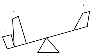 Cho hình vẽ , coi `a,b,c` là khối lượng của các vật nặng.khi đó ta biểu diễn: