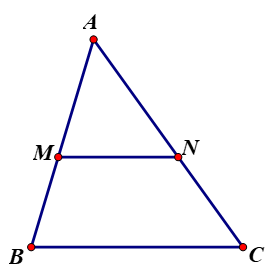 Vì `MN //// BC` nên theo định lí Ta-lét ta có `(AM)/(AB)=(AN)/(AC);(MB)/(MA)=(NC)/(NA);(AB)/(MB)=(AC)/(NC)`