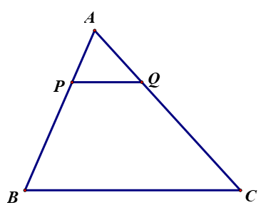 Áp dụng định lí Thalès; từ `PQ // //BC` để lập các đoạn thẳng tỉ lệ