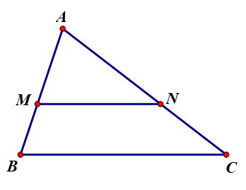 Vì `MN //// BC` nên áp dụng hệ quả của định lí Thalès ta có: