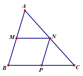 Cho hình vẽ. Biết `MN //// BC; NP //// AB`.