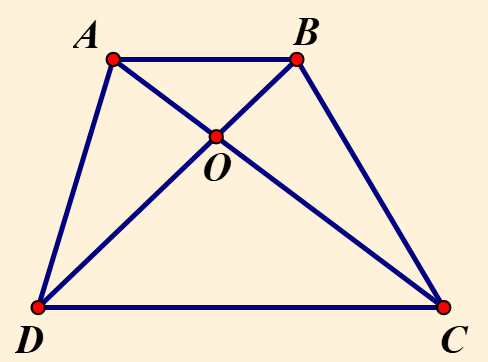 Hình thang `ABCD (AB //// CD)`; hai đường chéo `AC` và `BD` cắt nhau tại `O`. Khẳng định nào dưới đây là sai?