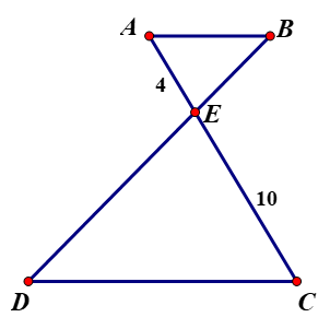 Cho hình vẽ. Biết `AB //// DC`; `EA = 4` `cm`; `EC = 10` `cm`; `AB + CD = 28` `cm`.