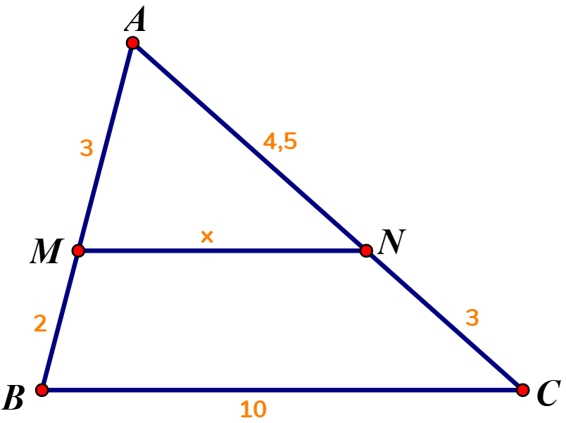 `(AM)/(MB)=3/2;(AN)/(NC)=(4,5)/3=3/2`