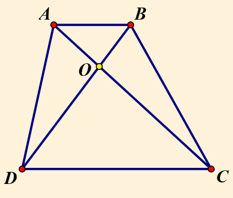 Cho hình thang `ABCD(AB////CD)`. Biết `O` là giao điểm của hai đường chéo. Khi đó ta có cặp tam giác đồng dạng là: