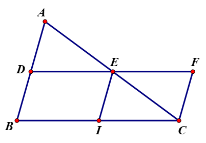 Cho hình vẽ. Biết `DE //// BC; IE //// CF //// AB`.