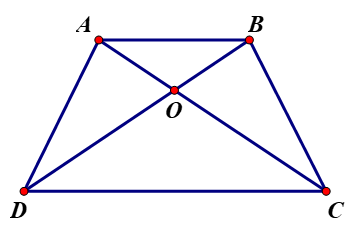 Cho hình vẽ. Biết `ABCD` là hình thang cân; các đường chéo `AC` và `BD` cắt nhau tại `O`.