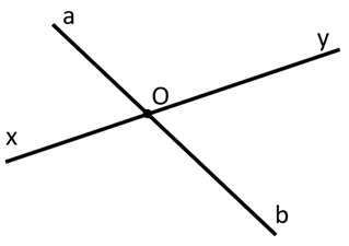Đường thẳng `xy` cắt đường thẳng `ab` tại `O`