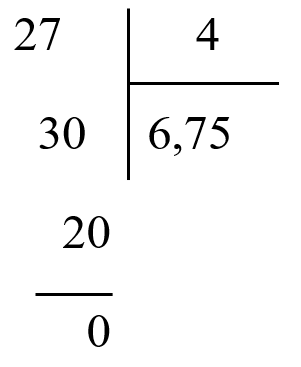 Viết thêm chữ số `0` vào bên phải `2` được `20`, `20` chia `4` được `5`, viết `5; 5` nhân `4` bằng `20; 20` trừ `20` bằng `0`, viết `0`.
