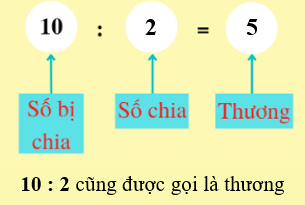 - Nhận biết được số bị chia, số chia, thương trong phép chia