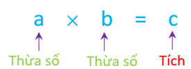 - Phép nhân hai số tự nhiên `a` và `b` cho ta một số tự nhiên gọi là tích của `a` và `b`.