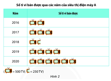 Biểu đồ tranh dưới đây cho biết số ti vi (TV) bán được qua các năm của `1` siêu thị điện máy.