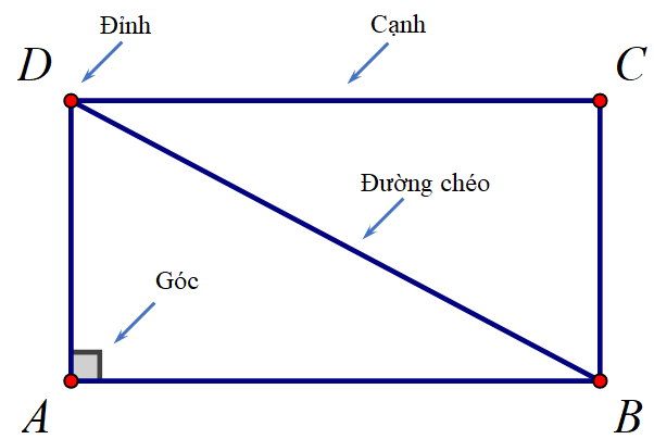 - Bốn góc ở đỉnh A, B, C, D bằng nhau và bằng góc vuông.