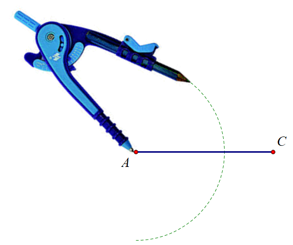 Bước 2: Dùng compa vẽ một phần đường tròn tâm A bán kính `5` `cm`.