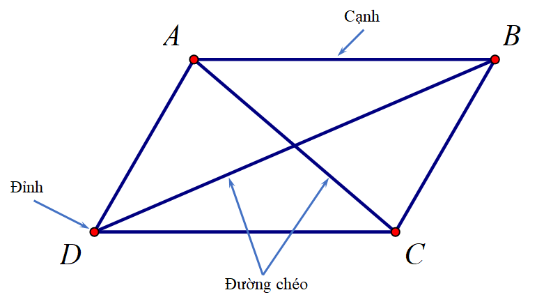 - Hai cặp cạnh đối diện song song: AB song song với CD; BC song song với AD.