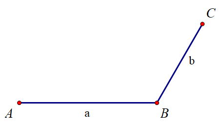 Bước 2: Vẽ đường thẳng đi qua B. Lấy điểm C trên đường thẳng đó sao cho BC = `b` (`cm`).