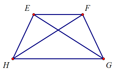 - Hai góc kề một đáy bằng nhau: góc đỉnh E bằng góc đỉnh F, góc đỉnh G bằng góc đỉnh H.