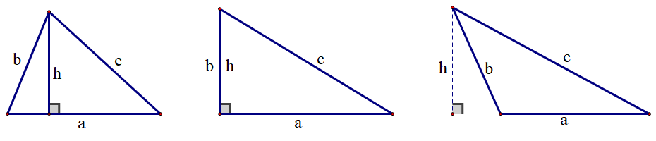 Cho tam giác có độ dài ba cạnh lần lượt là `a`, `b`, `c` và chiều cao tương ứng với cạnh `a` có độ dài là `h` (như hình vẽ).