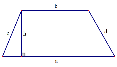 Cho hình thang có độ dài bốn cạnh là `a`, `b`, `c`, `d` và đường cao `h` (như hình vẽ).