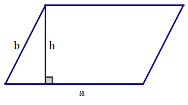 Cho hình bình hành có độ dài hai cạnh là `a` và `b`, chiều cao tương ứng với một cạnh `a` có độ dài là `h` (như hình vẽ).