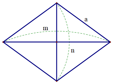 Cho hình thoi có độ dài một cạnh là `a`, độ dài hai đường chéo của hình thoi là `m` và `n`.