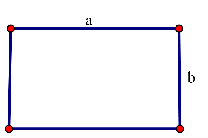 Cho hình chữ nhật có chiều dài là `a`, chiều rộng là `b` (như hình vẽ).