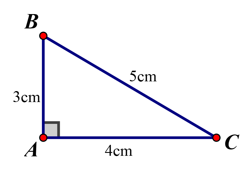 Ví dụ: Cho tam giác ABC vuông tại A có `AB = 3 cm, AC = 4 cm, BC = 5 cm`. Tính chu vi và diện tích tam giác ABC.
