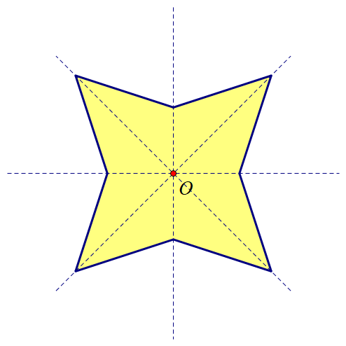 Khi đó, hình vẽ trên là hình có tâm đối xứng và `O` là tâm đối xứng của hình trên.