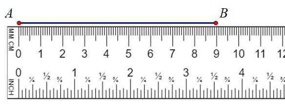 Khi đó, ta nói đoạn thẳng AB có độ dài là `9` `cm`.