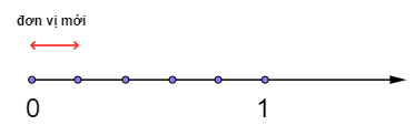 + Chia đoạn thẳng đơn vị thành `5` phần bằng nhau, lấy một đoạn làm đơn vị mới thì đơn vị mới bằng đơn vị cũ.