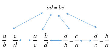 `a/b=c/d`; `a/c=b/d`; `d/b=c/a`; `d/c=b/a`