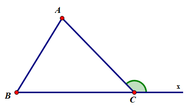 Chẳng hạn ở hình trên, góc `ACx` là góc ngoài tại đỉnh `C` của tam giác `ABC`.