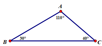 a) Định lý: Tổng ba góc trong một tam giác bằng `180^o`