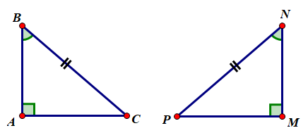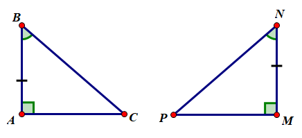 `-` Nếu một cạnh góc vuông và góc nhọn kề cạnh ấy của tam giác vuông này bằng một cạnh góc vuông và góc nhọn kề cạnh ấy của tam giác vuông kia thì hai tam giác vuông đó bằng nhau.