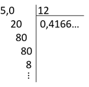 Ví dụ: Viết phân số `5/12` dưới dạng số thập phân