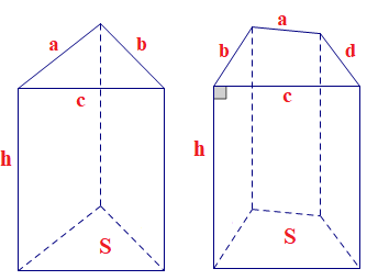 `-` Diện tích xung quanh của hình lăng trụ đứng tam giác hay hình lăng trụ đứng tứ giác đều bằng chu vi đáy nhân với chiều cao: