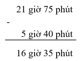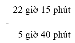 Ví dụ `2`: Tính `22` giờ `15` phút `- 5` giờ `40` phút