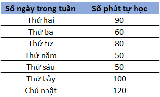 VD: Bảng thống kê sau đây cho biết thời gian tự học môn Toán tại nhà của bạn Lâm.