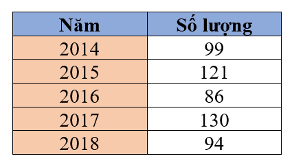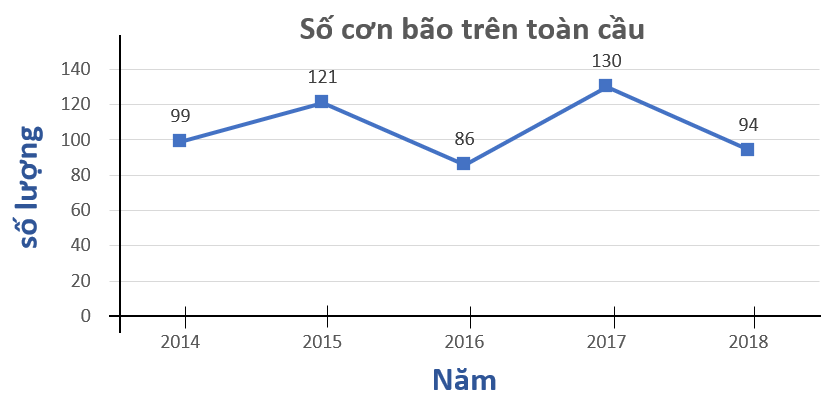 VD: Bảng thống kê số cơn bão trên toàn cầu