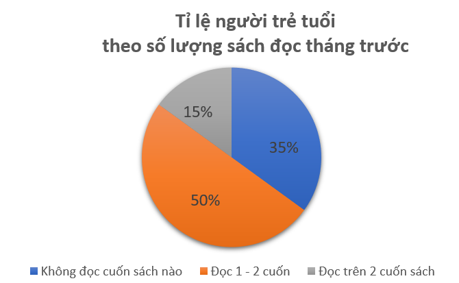 a. Vì ta muốn biểu diễn tỉ lệ người trẻ tuổi theo số lượng sách đã đọc tháng trước so với tổng sổ người trẻ tuổi được hỏi nên ta dùng biểu đồ hình quạt tròn.