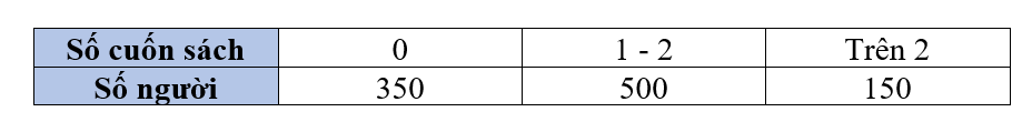 VD2: Một nhóm nghiên cứu đã phỏng vấn `1 000` người trẻ tuổi về số cuốn sách đã đọc trong tháng trước thu được kết quả sau: