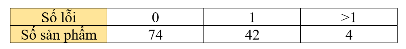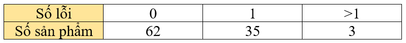 VD: Một nhà máy sản xuất linh kiện điện tử, kiểm tra chất lượng của `100` sản phẩm. Kết quả được ghi trong bảng sau: