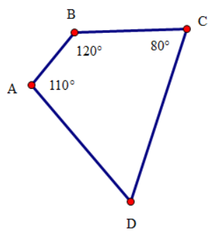 Do đó `hat D = 360^o - (hat A + hat B + hat C) = 360^o - (110^o + 120^o + 80^o) = 50^o`