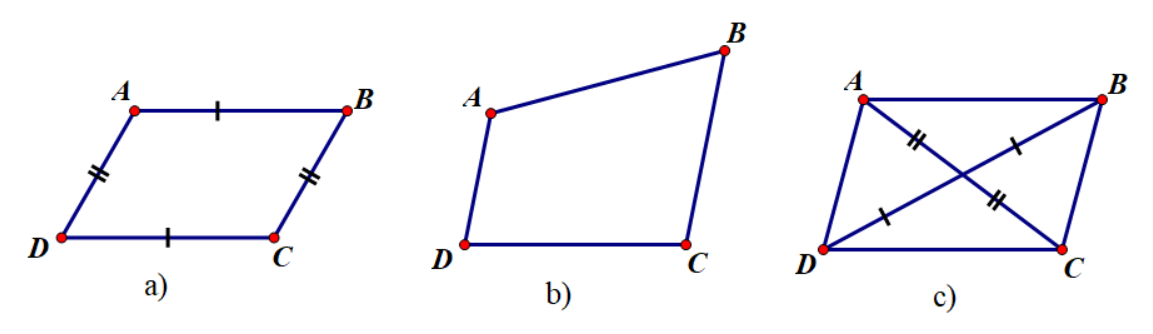 VD: Trong ba tứ giác dưới đây, tứ giác nào là hình bình hành, tứ giác nào không là hình bình hành? Vì sao?