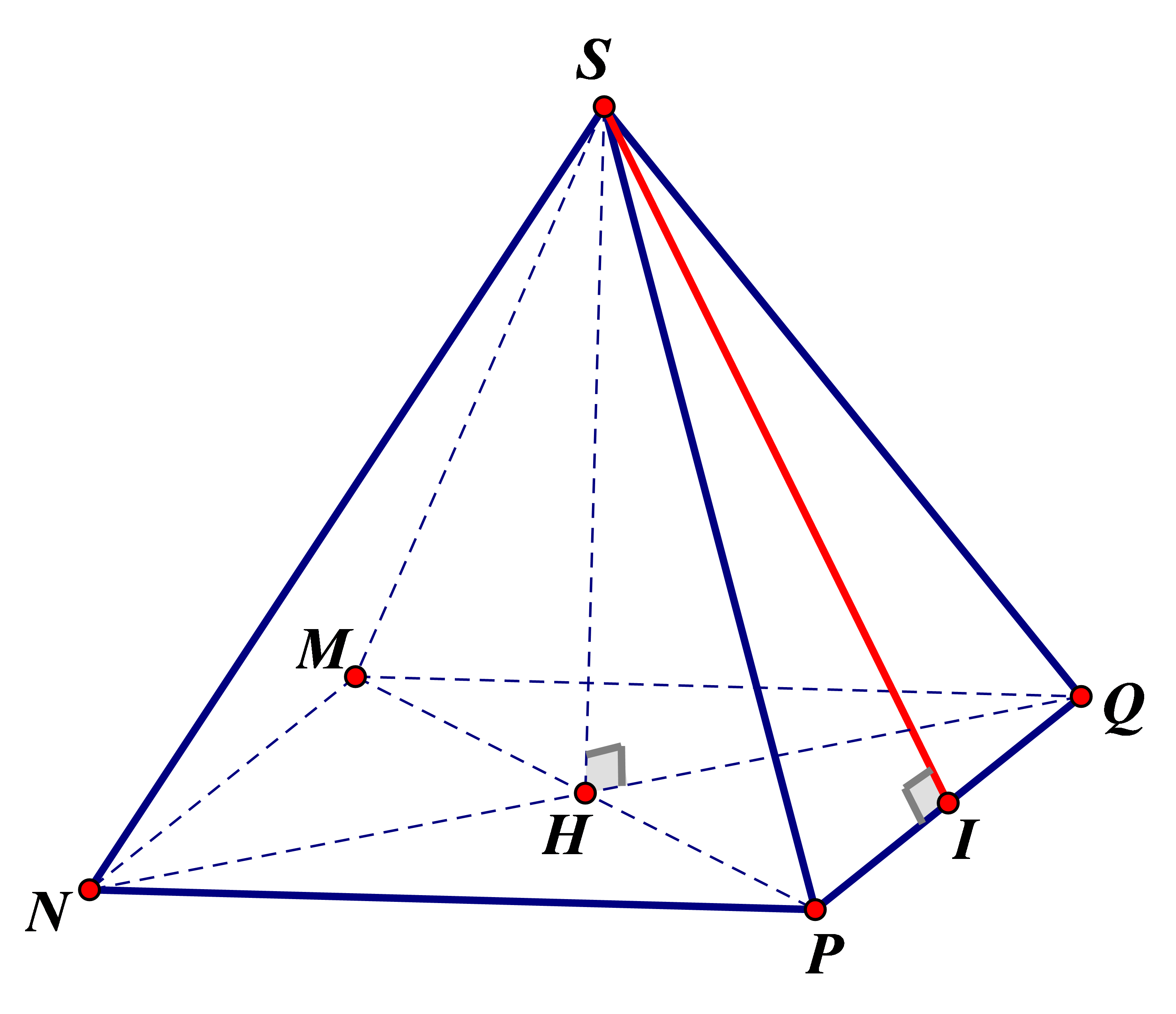 Các cạnh bên: `SM, SN, SP, SQ`