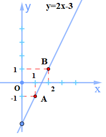 b) Các điểm `A(1;-1)`, `B(2;1)` thuộc đồ thị của hàm số `y=2x-3` được vẽ như hình dưới.